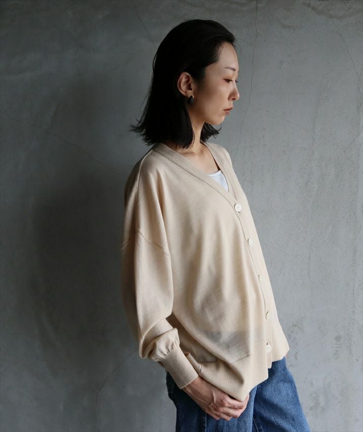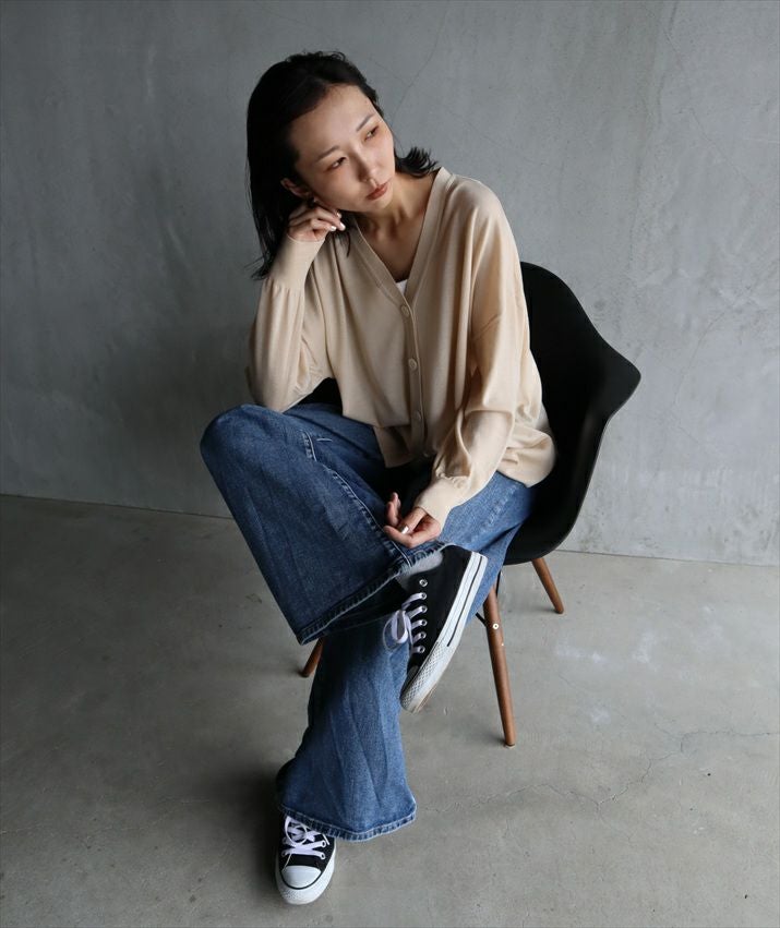 秋のはじまりにぴったりなレイヤードしやすい薄手のカーディガンです。