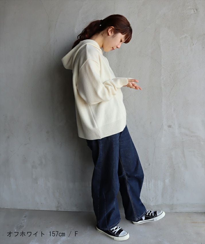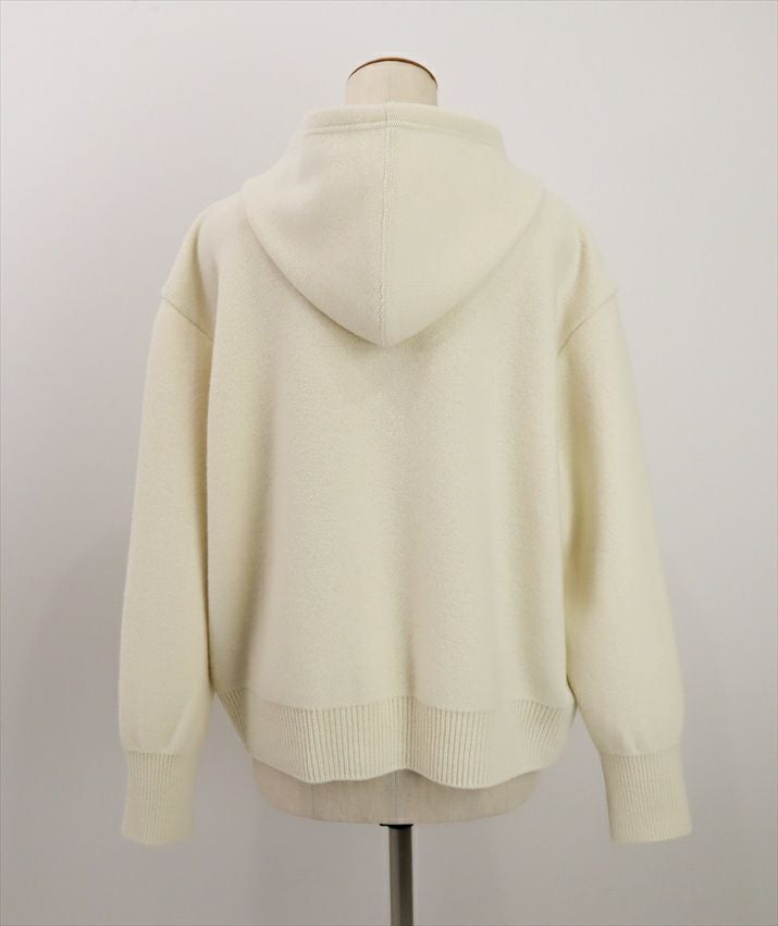 一見カジュアルなフーディをあえてカシミヤ入りニットテキスタイルで仕立てることで、大人にふさわしい気品を纏ったアイテムに。