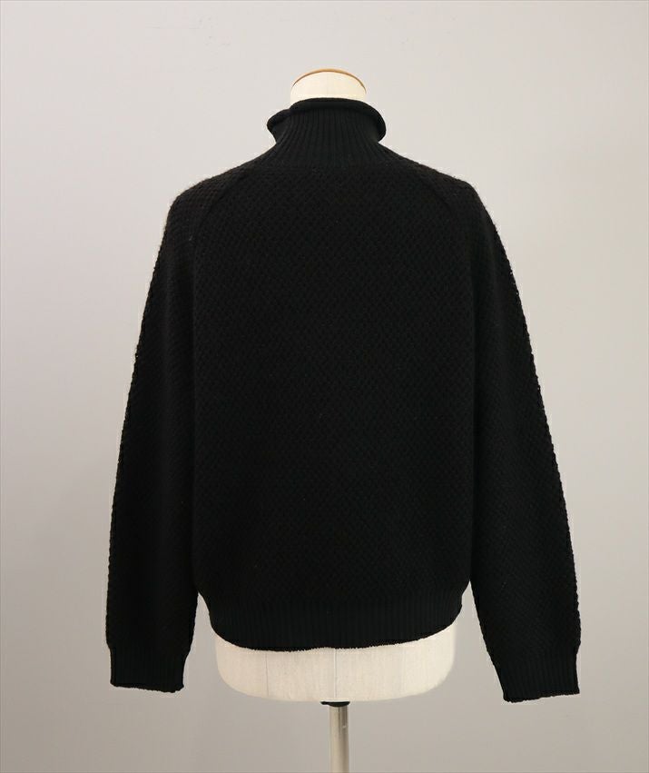 ラグランスリーブのやわらかな曲線と、衿ぐりのくるくると巻かれた部分が柔らかい雰囲気の丸みを帯びたシルエットを作ります。