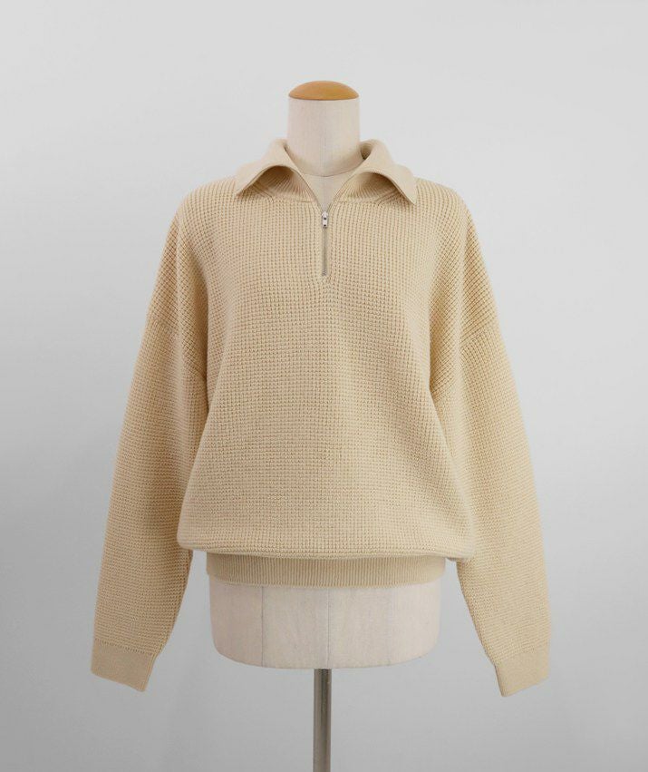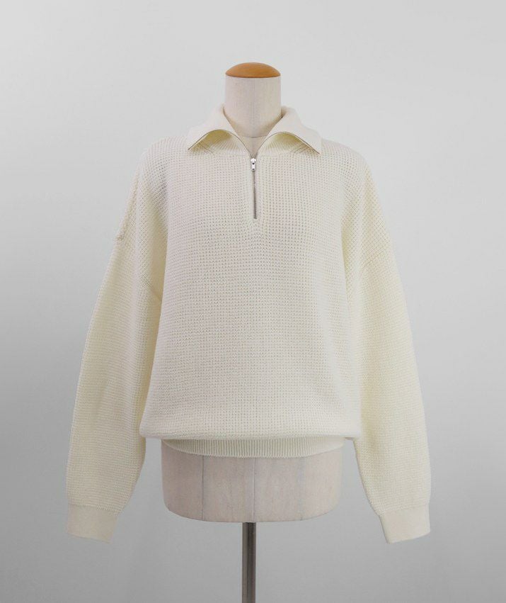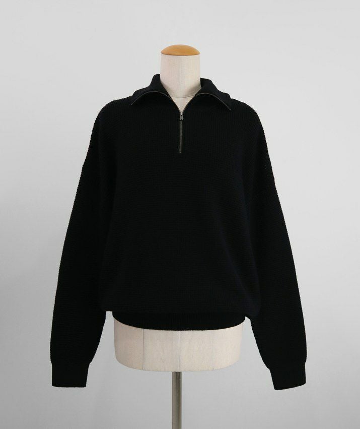 ハーフジップの襟元は、開けてラフに着ても、閉じてスマートに着てもサマになるバランスに設計。