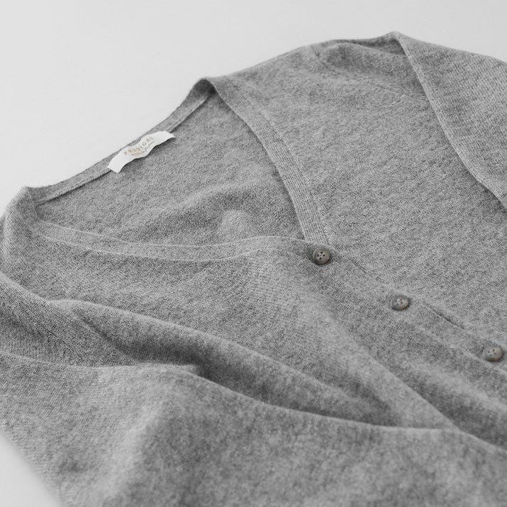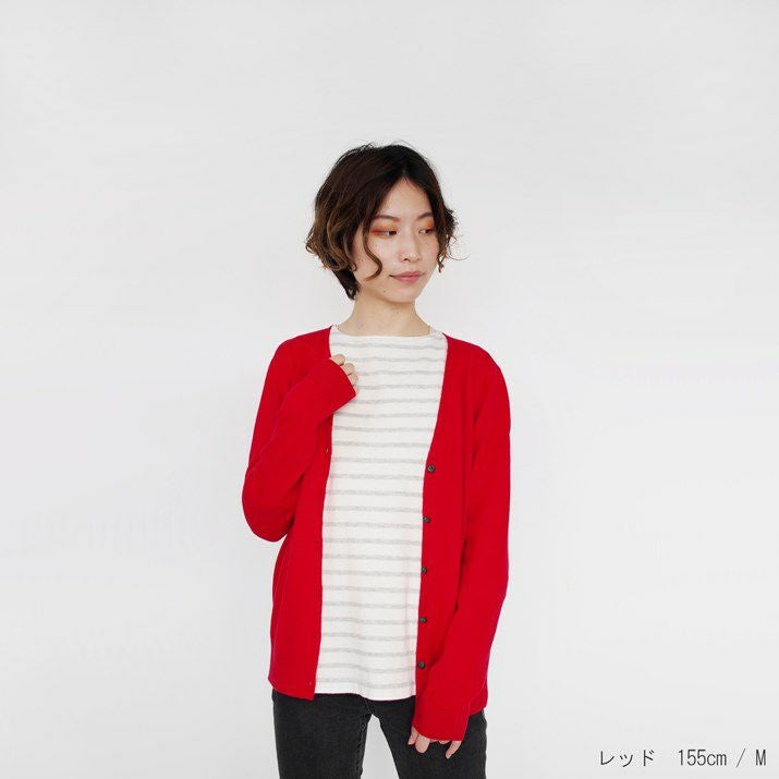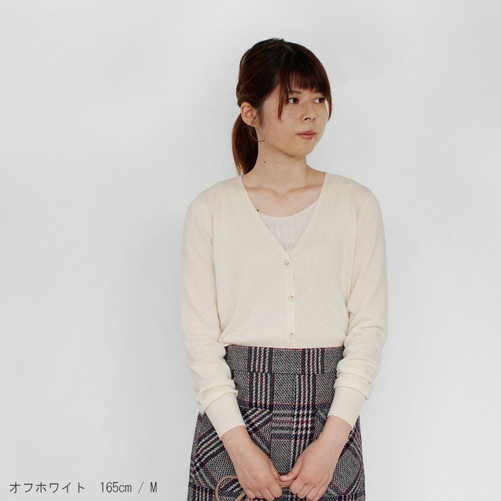 ・カシミヤ100%素材を使用した、軽くてあたたかいVネックカーディガン