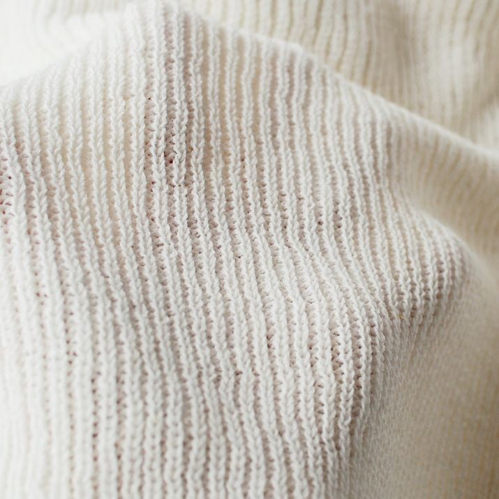 縦に伸びやすい編地の為、濡れたままハンガーに干してしまうと水分の重みで伸びてしまいます。