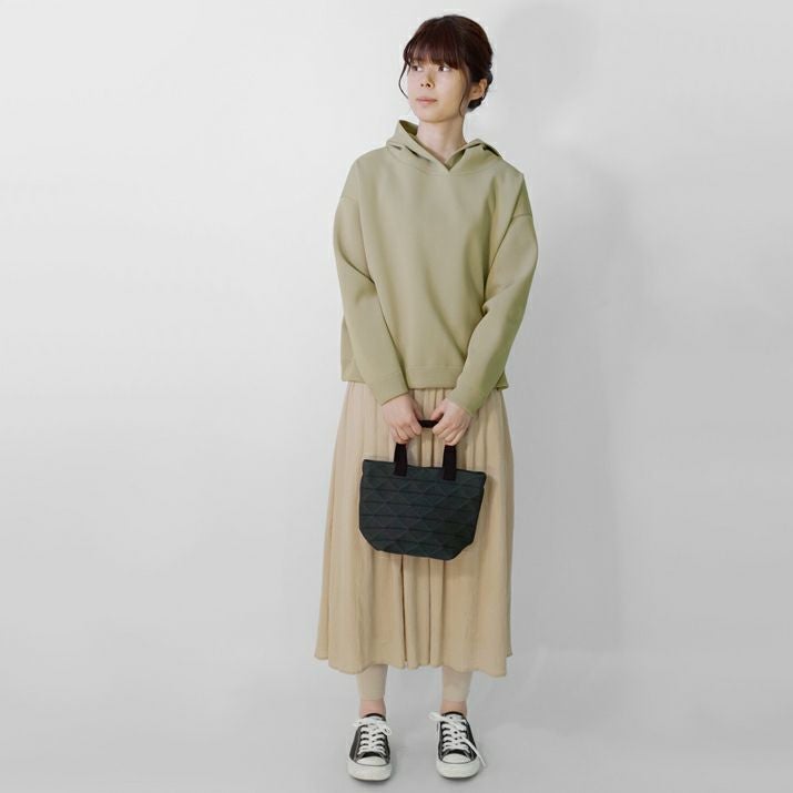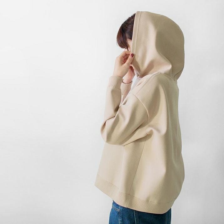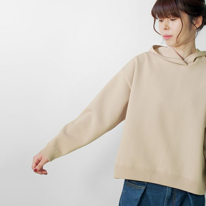 ・裏毛素材のパーカーよりも軽く、ハリの出る素材と編み方で、より立体的に仕上げました