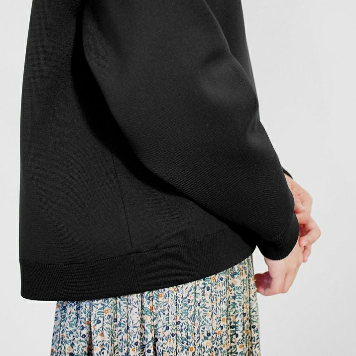 ・表面感はフラットで編み目の出方が直線的なのでスッキリときれいめな印象に