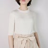 一枚でさらっと着るのはもちろん、ジャケットのインナーとしても活躍。同素材のカーディガンとセットでの着用もおすすめ。ハイウエストボトムやワイドパンツなど、ボリューム感のあるボトムと相性◎