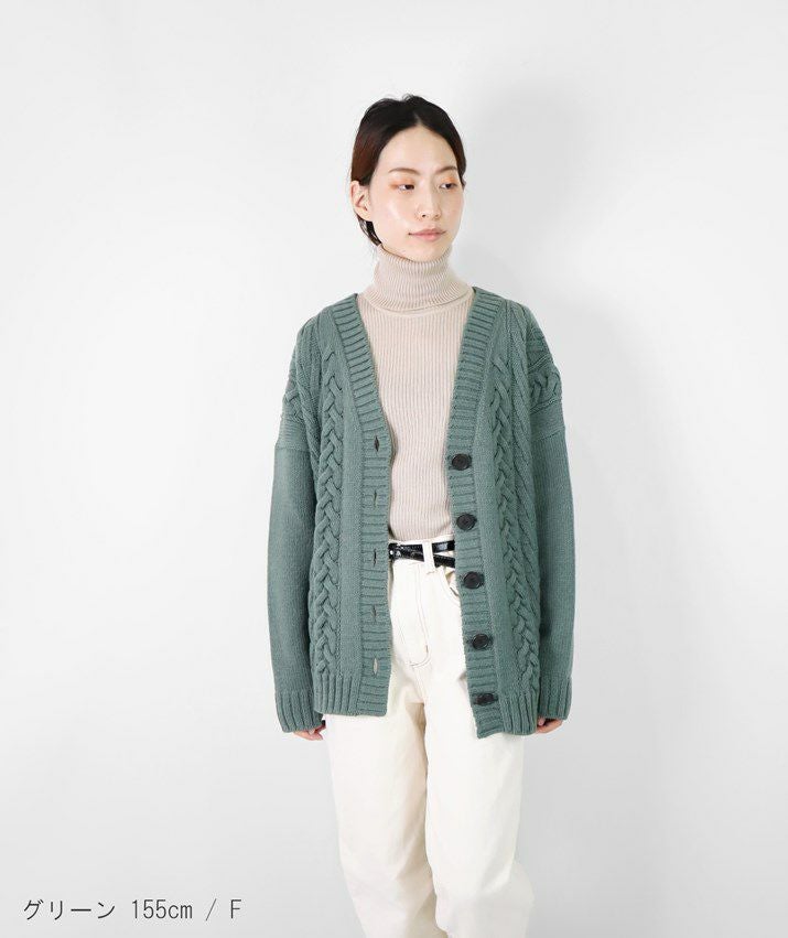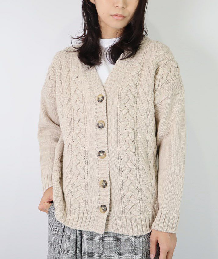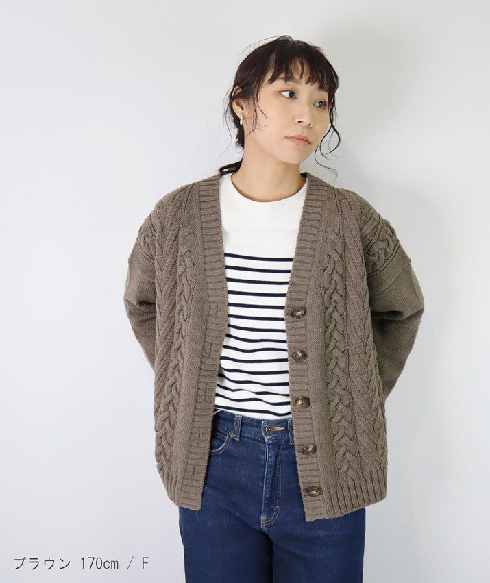 ・存在感のあるケーブル編みを前身頃に入れて、後身頃と袖は天竺編みですっきりとした印象に