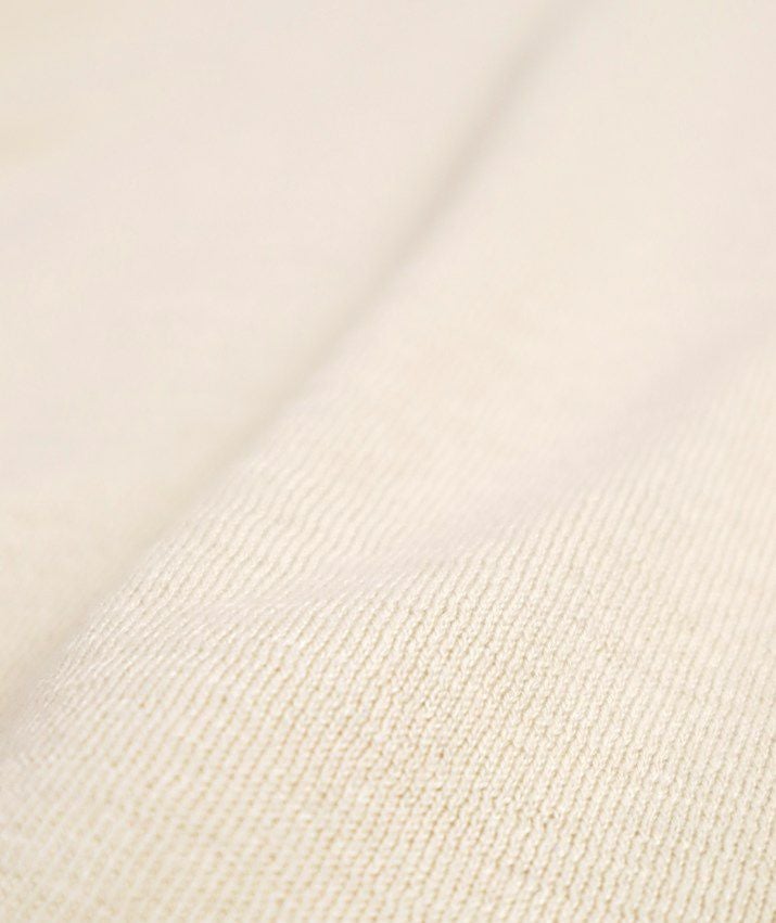 一般のシルクに比べ、繊維が細くしなやかなペニーシルクとカシミヤをブレンドした糸を使用。シルク混ならではの上品な光沢と、しっとりなめらかな肌触りが特長です。保湿性・保温性に優れ、秋から春までロングシーズン快適に着用できます。