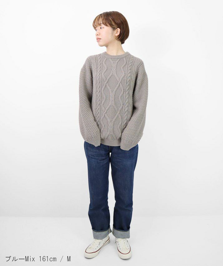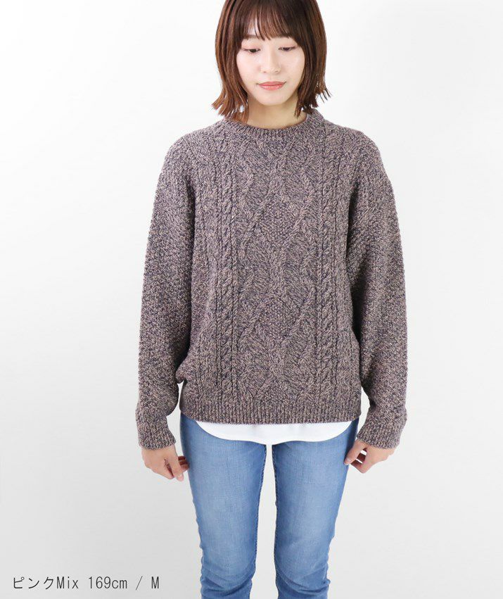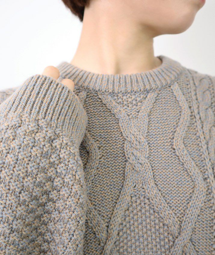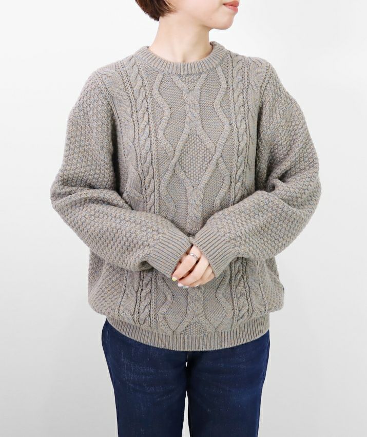 ・ウール素材のケーブルニットプルオーバー