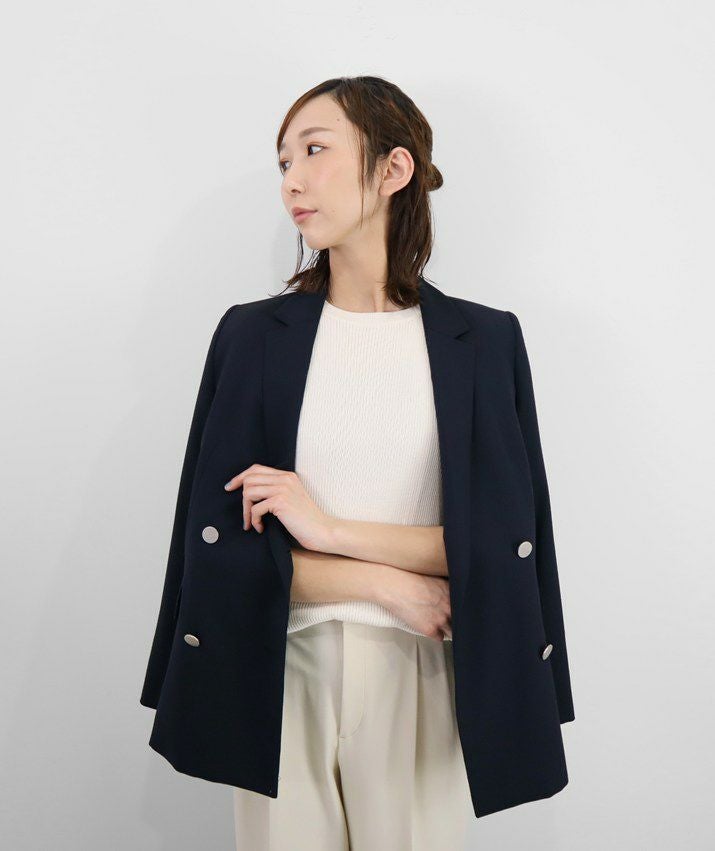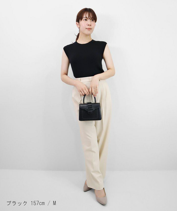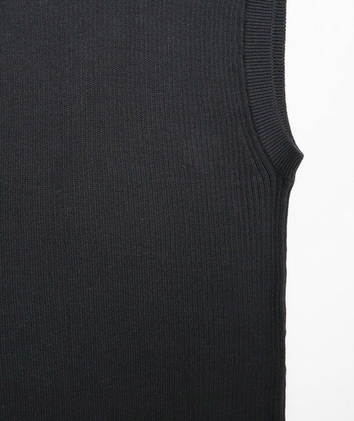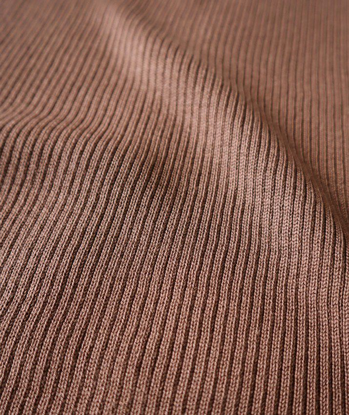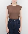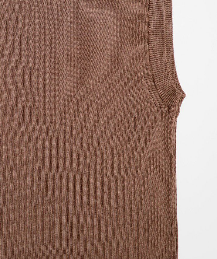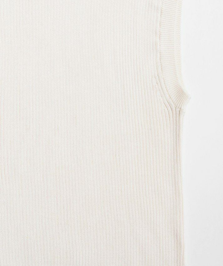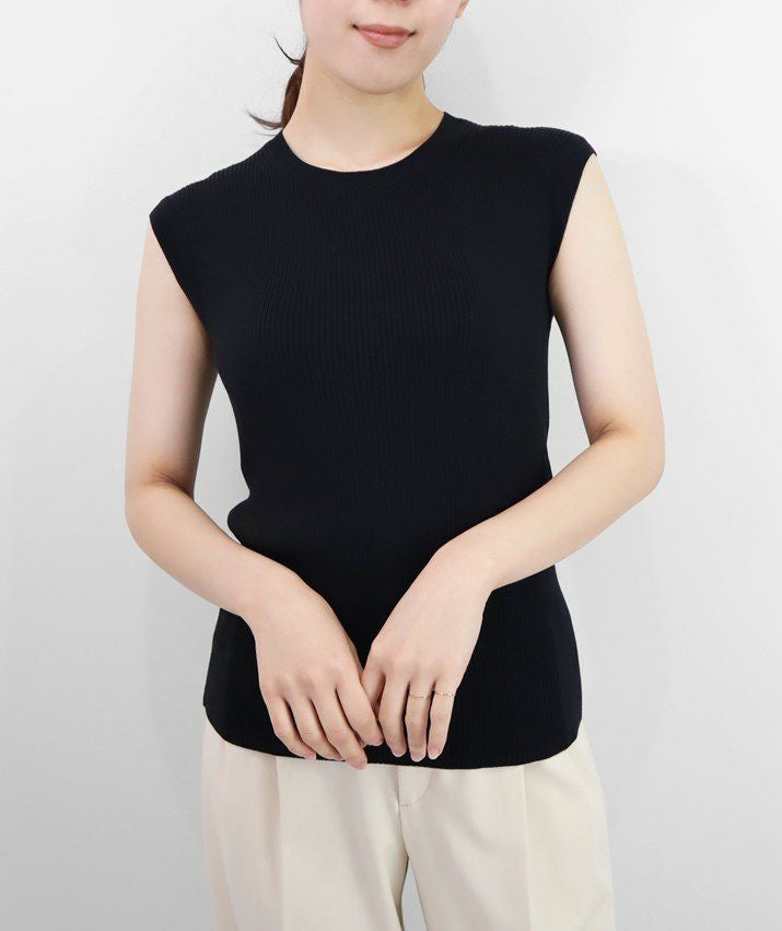 編地は14ゲージのリブ編み。糸を2本取りで使用することで程よい厚みと上品な光沢をプラス。コンパクトなシルエットですが伸縮性があり、締め付け感のないやわらかな着心地。ほどよく肩にかかる絶妙な袖丈で、ノースリーブに抵抗がある大人世代にも取り入れやすい1枚です。