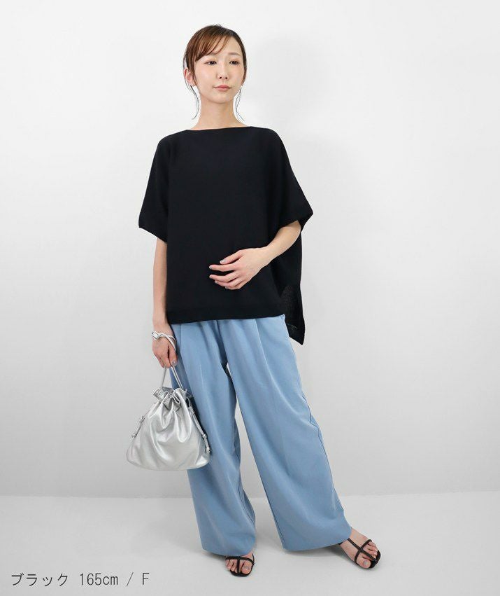 前だけタックインしてもバランスよく決まる丈感で、ワイドパンツやロングスカートとの相性も抜群。大人の女性にも取り入れやすい、ほんのり透け感のある編地が、涼しげなスタイリングを叶えてくれます。