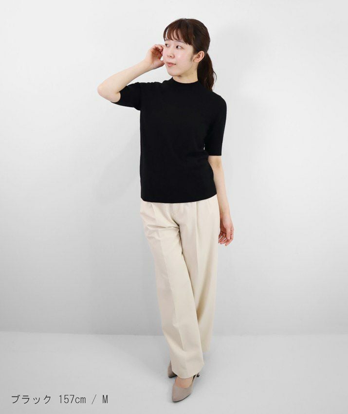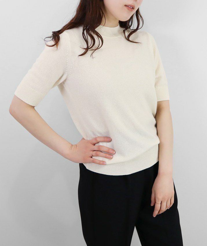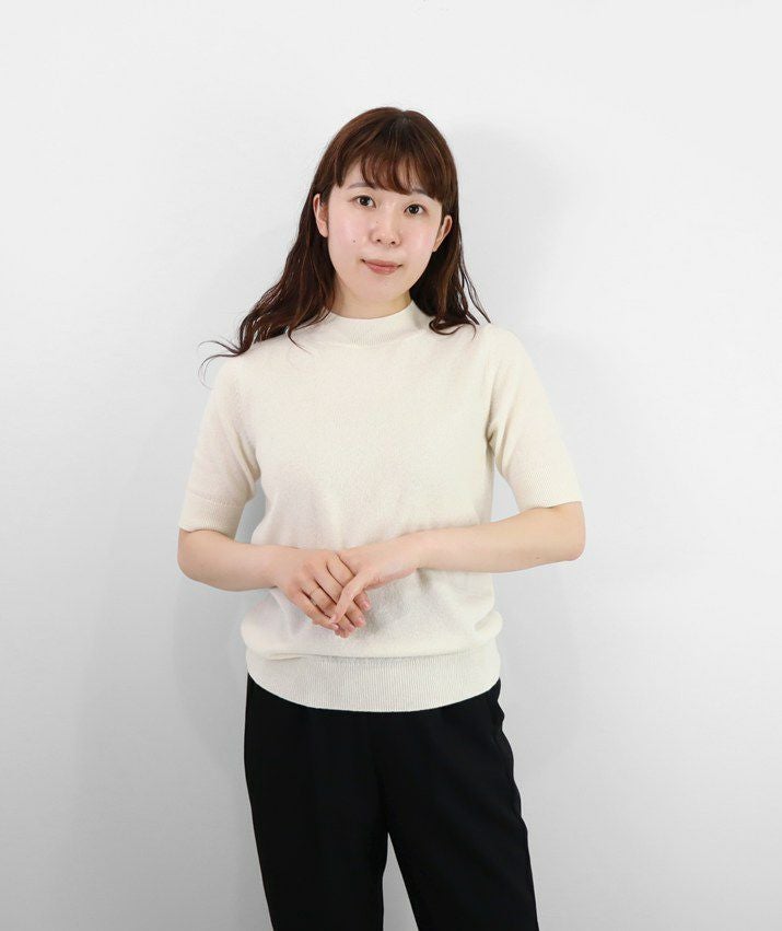 編地は12ゲージの天竺編み。アクセサリーが映える上品なハイネックは、程よい高さで顔まわりをすっきり見せてくれます。Tシャツのように気軽に着られて、気温差のある季節の変わり目にも重宝します。無駄をそぎ落としたシンプルで洗練されたデザインで、流行に左右されず、長く着られる一枚です。