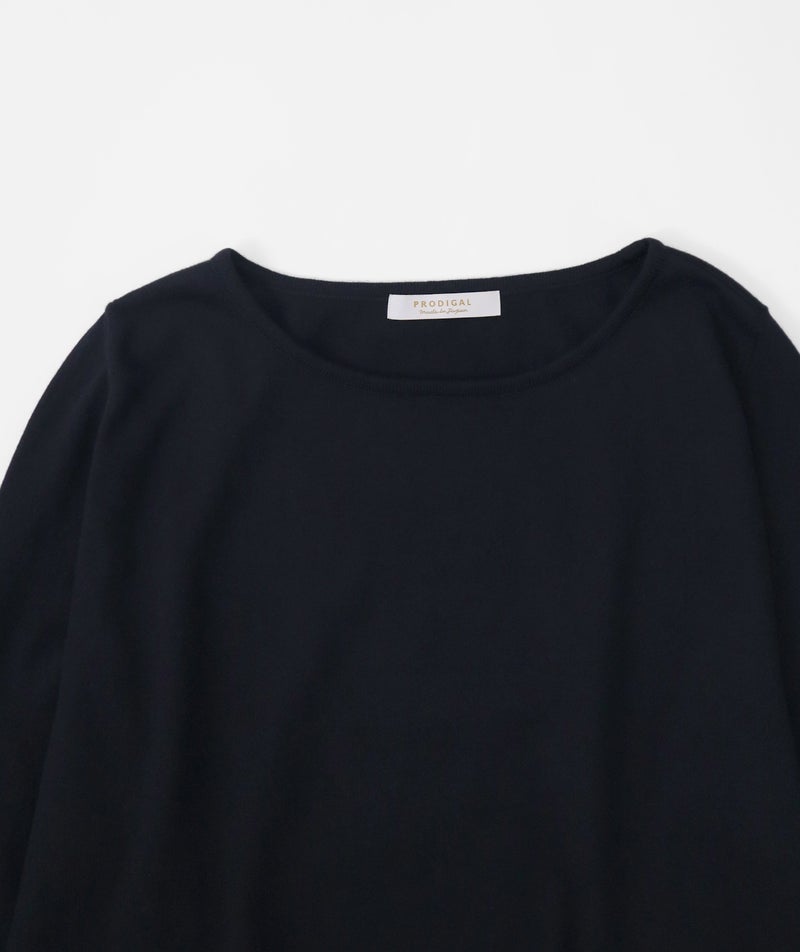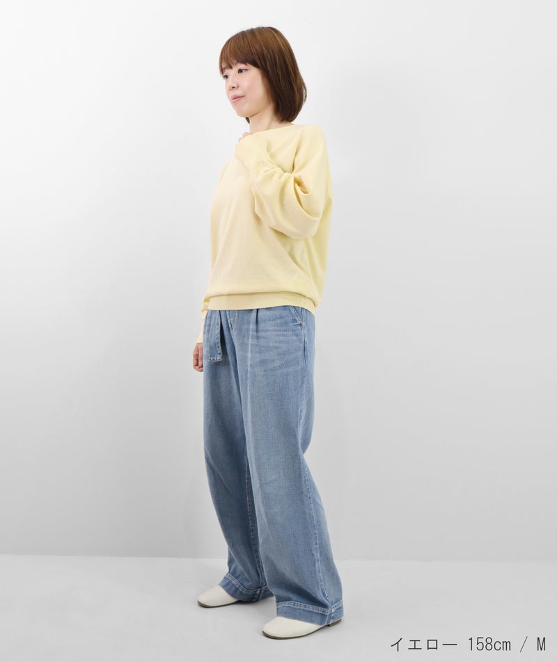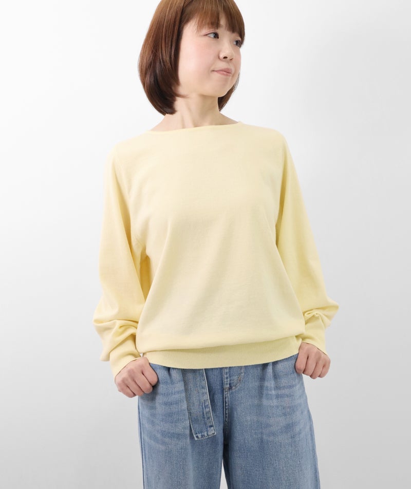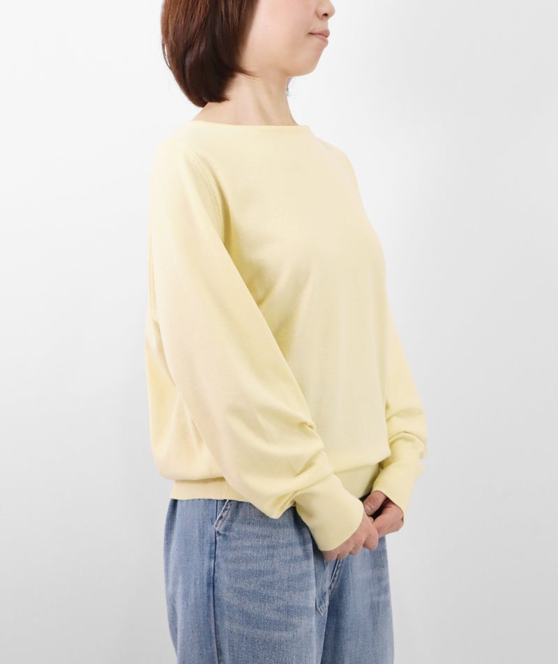 デコルテを美しく見せるボートネックは、開きすぎず上品なバランスに。身体のラインを拾いにくい、リラックス感のあるシルエットで、心地よく着ていただけます。