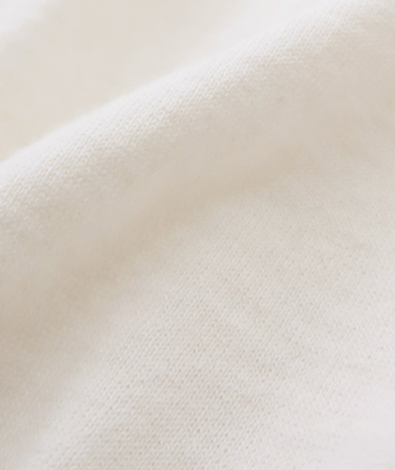 しなやかなカシミヤとなめらかな超長綿をブレンドしたコットンカシミヤ素材を使用。ふんわりやわらかな風合いと軽やかな着心地が魅力です。自宅で手洗いできるので、お手入れも簡単。