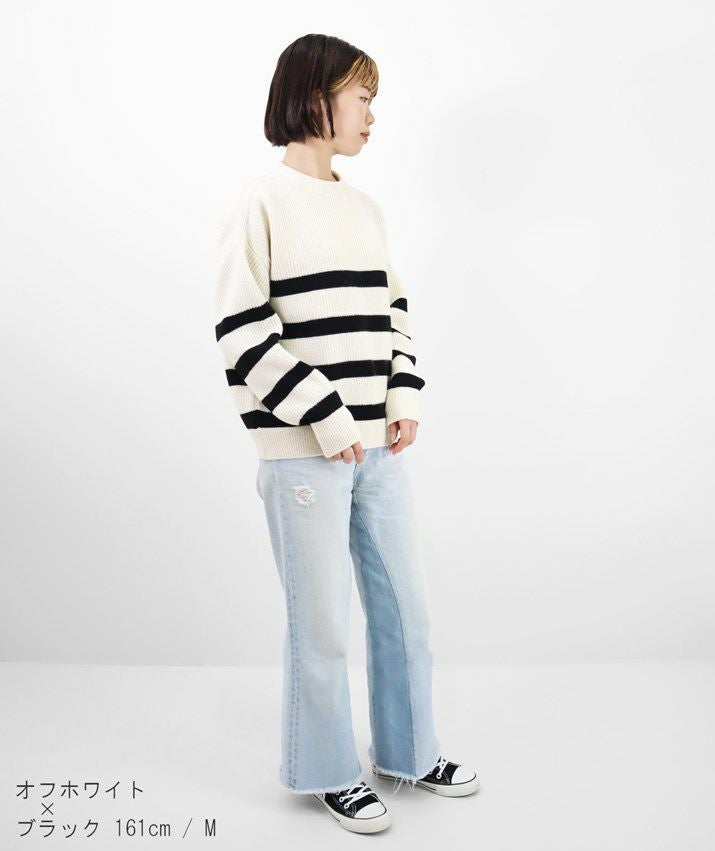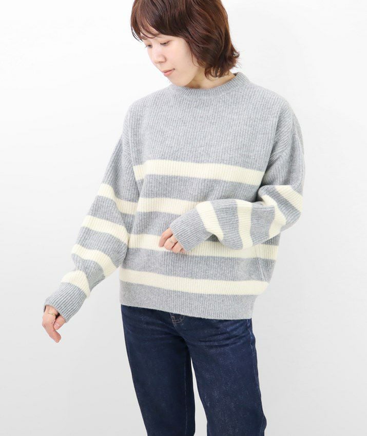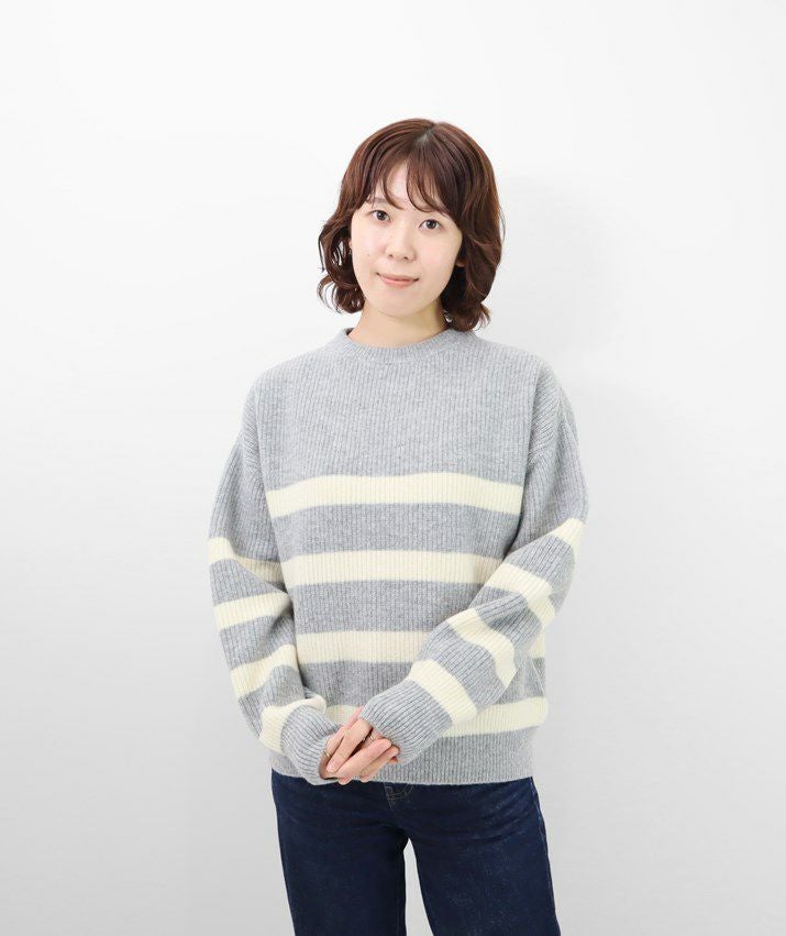 ウールカシミヤパネルボーダーセーター